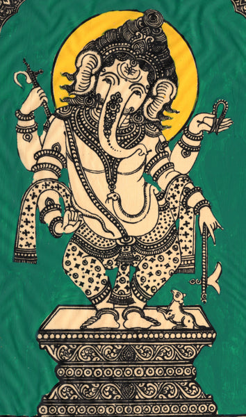 Pattachitra Ganesha Tussar Silk Art Handmade Indian Odisha Tribal Folk Painting