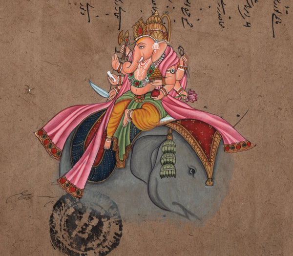 Ganesha Elephant Art Handmade Indian Miniature Ethnic Ganesh Hindu Folk Painting