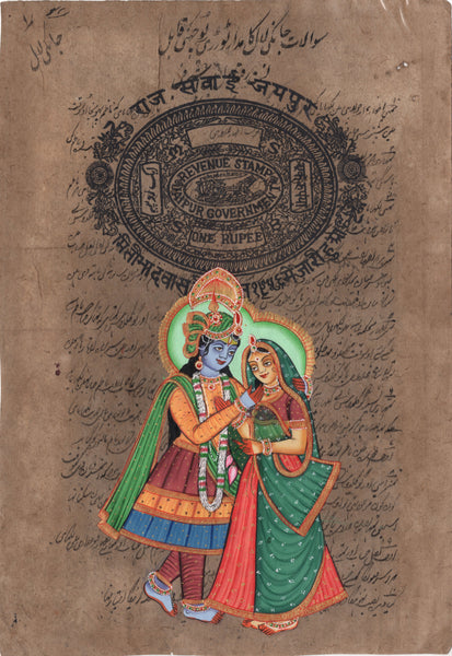 Krishna Radha Religious Art Hindu Handmade God Goddess Watercolor Image Painting